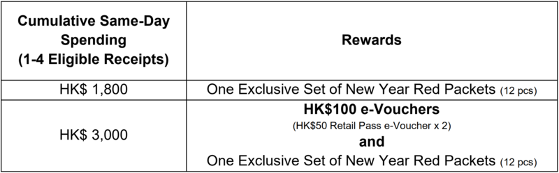 - The Reward can only be redeemed on the day of Eligible Transaction and the rewards from each tier of the Cumulative Same-Day Spending Amount can only be redeemed once on the same day. The Reward and Exclusive Set of New Year Red Packets are offered on a first-come-first-served basis and are subject to the quota as stipulated. Photo for reference only.