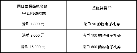 - 同日累积签账是根据以K11 Art Mall之商户同日发出的最多4张合资格收据计算。所有签账必须以同一张合资格汇丰Visa信用卡进行交易(每张收据最少为港币50元, K Dollar 及 / 或 K11 实体 / 电子礼券作消费之金额除外) 。