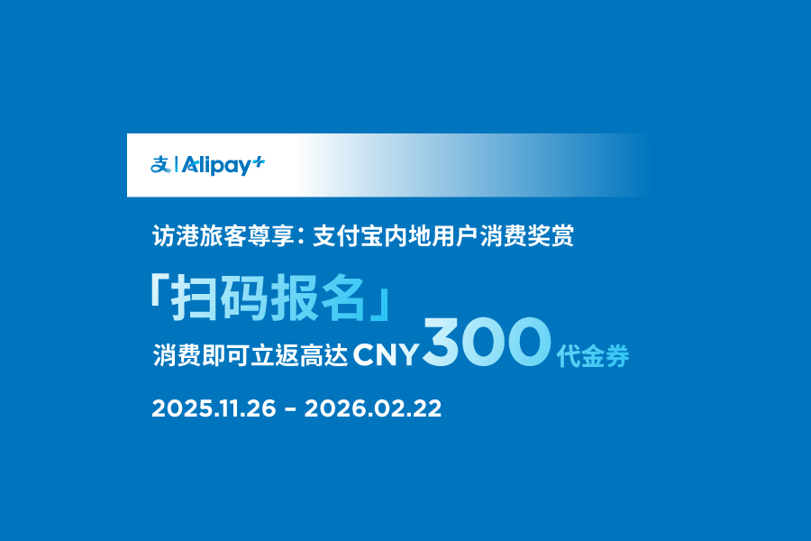 由2025年11月26日起至2026年2月22日,合资格支付宝内地用户于K11 Art Mall 参与商户内扫描指定二维码,并单一消费满CNY 10,000,即可额外赚取高达CNY 300代金券消费奖赏!