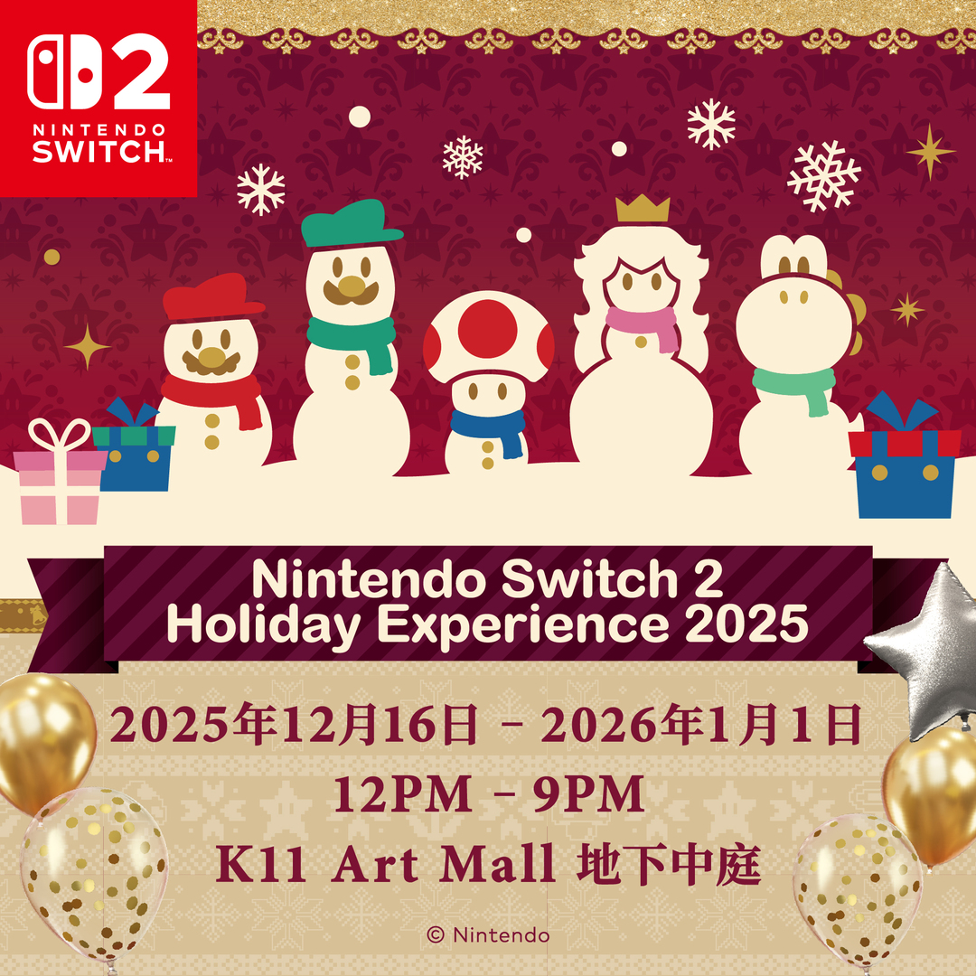 Nintendo Switch 2今年旋風面世,隨即帶來多款遊戲軟體,當中有合家歡的派對遊戲,也有引人入勝的冒險類遊戲。由即日至2026年1月1日,任天堂將於K11 Art Mall 地下中庭舉辦「Nintendo Switch 2 Holiday Experience 2025」,誠邀你親臨現場,盡情體驗多種遊戲,完成試玩更有機會獲得活動特典!