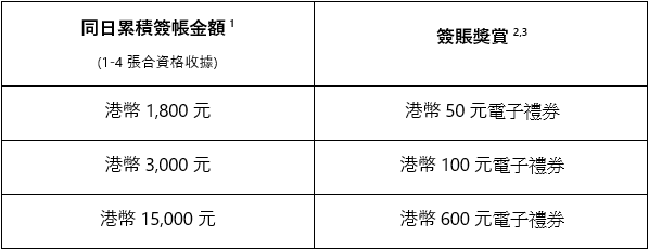 - 獎賞僅限於合資格交易當日兌換,且每位會員每日最多可換領獎賞的每個額度一次。